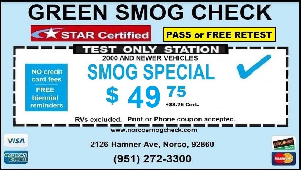If you are seeking a great smog experience in Norco, then Green Smog Check is just the right place! We are a smog test only center in Norco, CA. Our experienced smog technicians have the expertise for providing quality smog testing services. Visit our smog test center and get 100% customer satisfaction.